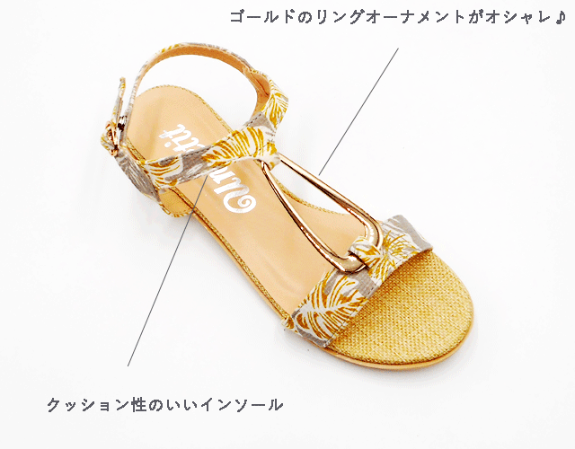商品説明素材アッパー:合成皮革, 底材:合成底 サイズS:22.5cmM:23.5cm L:24.0cmLL:24.5cm 商品紹介 Unpetitのゴールドリングフラットサンダル ゴールドリングオーナメントがオシャレ♪